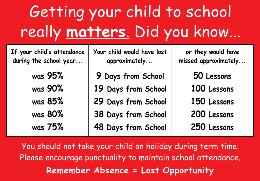 Absences will be marked as unauthorised if your child is absent from school without good reason, such a illness or an exceptional circumstance. Children arriving after the register closes (without good reason) will also be marked as an unauthorised absence.